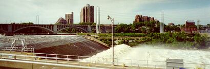 Saint Anthony Falls on the Mississippi River showing a pronounced hydraulic jump