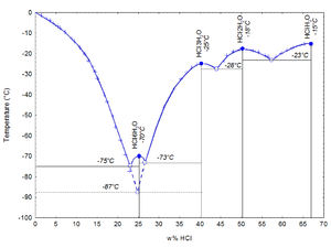 Melting temperature as a function of HCl concentration in water.[7][8]