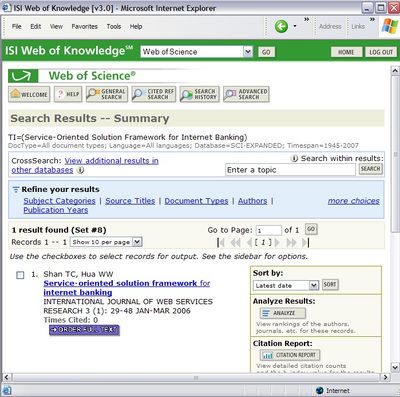 The ISI Web of Knowledge suite encompasses the following databases: [4][5]