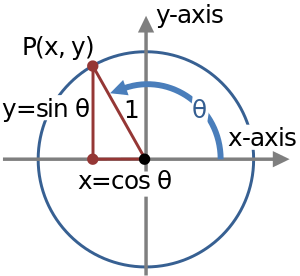 Visual proof of the Pythagorean identity: for any angle , the point lies on the unit circle, which satisfies the equation . Thus, .