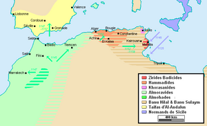 (invasion of the Banu Hilal (1057) — Kairouan destroyed, Zirids reduced to the main coastal cities, rural areas fragments into petty Bedouin emirates)[6]