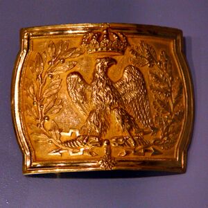 The unit's numbers rose to 1269 in 1807 with the addition of two new squadrons, and on 9 December 1813 it was attached to the Guard's 3rd regiment of éclaireurs. The dragoons' uniform and weaponry was the same as those of the Guard's mounted grenadiers, only in green rather than blue, and (in place of the bonnet à poil) a copper helmet with a hanging mane in the Neo-Greek Minerve style, and a red plume.[6]
