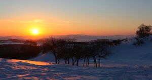 Due to its elongated shape, Inner Mongolia has a four-season monsoon climate with regional variations. The winters in Inner Mongolia are very long, cold, and dry with frequent blizzards, though snowfall is so light that Inner Mongolia has no modern glaciers[34] even on the highest Helan peaks. The spring is short, mild and arid, with large, dangerous sandstorms, whilst the summer is very warm to hot and relatively humid except in the west where it remains dry. Autumn is brief and sees a steady cooling, with temperatures below 0 °C (32 °F) reached in October in the north and November in the south.
