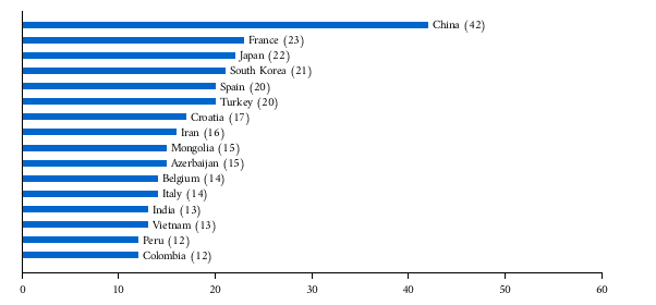 1  الصين 42[18]