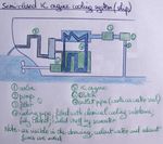 4ـ جريان سائل التبريد: يخرج الماء البارد من أسفل المشع بفعل المضخة، ثم يدخل إلى قمصان التبريد حول الأسطوانات من الأسفل، ويخرج من أعلى الأسطوانات إلى غطائها ومن غطاء الأسطوانة، وعبر المنظم الحراري يصل الماء إلى المشع من الأعلى من جديد، وتتم عملية تبريد الماء بتيار الهواء الذي يخترق المشع وذلك بفعل مروحة التبريد.