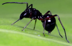 وهذا النوع من العناكب، "العنكبوت القافز المحاكي للنمل الأسود"، يشبه النمل، ويمشي مثلها كما أنه يحرك ساقيه الأماميتين في الهواء مثل زوج الهوائيات في النمل، لكنه يقفز عندما يتعرض للتهديد أو يصطاد. وهذه الأنواع يوجد معظمها في جنوب شرق آسيا.