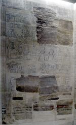 It was first described by James Burton in 1825.[1] In 1843, a German expedition directed by egyptologist Karl Richard Lepsius was traveling up the River Nile to Karnak. A French adventurer, Émile Prisse d'Avennes, dismantled and "stole" the blocks containing the king list one night in order to secure it for France, and sent it home.[2][3] Severely damaged, it is now on display at the Louvre[4] in Paris.