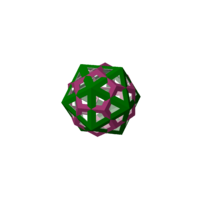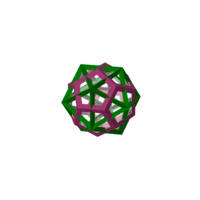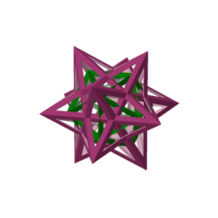The following images show the two dual compounds with the same edge radius. They also show that the Petrie polygons are skew. Two relationships described in the article below are also easily seen in the images: That the violet edges are the same, and that the green faces lie in the same planes.