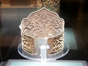 Yelü Deguang, posthumously Emperor Taizong of Liao, was the second son of Shulü Ping and not the first in line for the Khitan throne. His elder brother, the 26-year old heir apparent Yelü Bei, was disliked by the conservative Khitan elites for his intellectual pursuits. As a polymath, Yelü Bei was skilled in painting, writing in both Khitan and Chinese languages, and possessed a large personal library. He also had a taste for Chinese culture, music, medicine, and prognostication. Chinese-style primogeniture was also not a custom among the Khitans, who had elected their leader since the time of the Dahe Confederation, which was why Abaoji had them swear allegiance to Yelü Bei when he announced him as heir apparent.[64] Bei's mother, Shulü Ping, who was exceptionally powerful in her own right, commanding thousands of horsemen and leading troops on campaign, took control of all military and civil affairs as regent, after having cut off her right hand to be buried with her husband. Shulü Ping herself disproved of her first son as heir due to his Chinese leanings and used all her influence to have Bei set aside for his younger brother, Deguang, who had participated in the 922–923 and 924–925 campaigns. Toward the end of 927, Bei approached his mother and formally withdrew his claim. Deguang succeeded the throne.[65]
