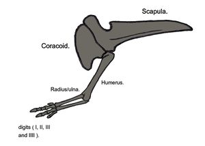 It was traditionally thought that the hands of dinosaurs evolved into the wings of birds by the disappearance of the two outward digits (IV and V), in contradiction to embryological studies on birds that showed that the retained digits are the three middle ones (II–III–IV). The hand structure of Limusaurus with its reduced digit I adds more weight to the digit II–III–IV identities for Tetanurae, the group which includes birds. Previous to the discovery of Limusaurus, theropods were assumed to have progressively evolved reduced digits on the ulnar side of the manus. This concept, known as Lateral Digit Reduction (LDR), is in contrast to Bilateral Digit Reduction (BDR), the reduction on digits on both sides of the hand commonly seen in all other tetrapod groups excluding dinosaurs. However, in Limusaurus, the first digit (digit I) is strongly reduced, along with other ceratosaurs, suggesting that BDR occurred in their sister group the Tetanurae as well.[1]