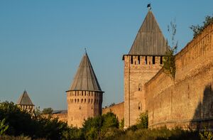 تم بناء الجدران بارتفاع 7 أمتار وسماكة 1.8 متر للدفاع عن المداخل الجنوبية والغربية للمدينة. |