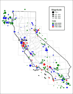 - ^ Toppozada, T. R.; Branum, D. (2004), "California earthquake history", Annals of Geophysics 47 (2–3): 509–512, http://www.annalsofgeophysics.eu/index.php/annals/article/view/3317/3363