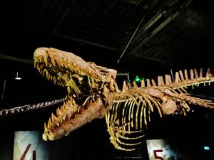 Skeletal mount of a Mosasaur, one of the most fearsome marine predators ever to have existed.