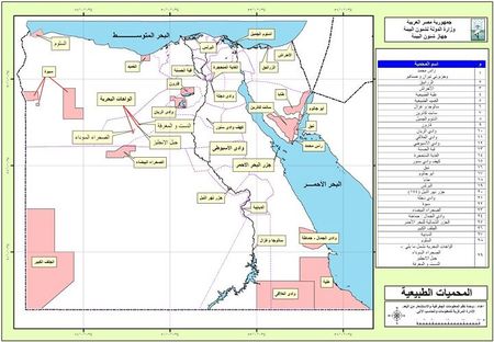 - محمية طابا: متضمنة الشريط الساحلي لمصر على خليج العقبة بمواقعه الطبيعية و تكويناته الصخرية.