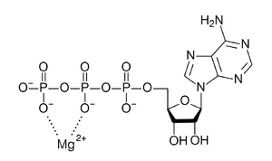 ATP (adenosine triphosphate), the main source of energy in cells, must be bound to a magnesium ion in order to be biologically active. What is called ATP is often actually Mg-ATP.[5]