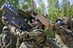 JASDF soldiers aiming a Type 91 Kai MANPAD at a mock airborne target in the Pacific Alaskan Range Complex as part of Red Flag – Alaska.