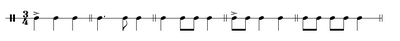 "Meter may be defined as a regular, recurring pattern of strong and weak beats. This recurring pattern of durations is identified at the beginning of a composition by a meter signature (time signature). ... Although meter is generally indicated by time signatures, it is important to realize that meter is not simply a matter of notation".[11] A definition of musical metre requires the possibility of identifying a repeating pattern of accented pulses – a "pulse-group" – which corresponds to the foot in poetry.[بحاجة لمصدر] Frequently a pulse-group can be identified by taking the accented beat as the first pulse in the group and counting the pulses until the next accent.[12][1]