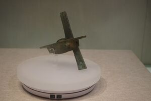 Weapons were largely the same as well, although there was more focus on idiosyncratic weapons wielded by particularly noteworthy individuals. For example, one man named Chen An apparently wielded a great sword over two meters in length[21] and Sun Quan's wife had over a hundred female attendants armed with daos.[22] Trends in warfare that had already been underway during the Eastern Han continued to gain momentum. By the end of the Three Kingdoms, the single edged dao, with its thicker and more durable dull side, had overtaken the straight double-edged jian as the primary close combat weapon.[23] The more expensive, lighter, and less durable jian entered the domain of court dancers, officials, and expert warriors.[24] While halberds were still used during the period, long spears and lances (similar to pikes) re-rose in prominence over halberds for infantry and cavalry forces. This was believed to have been the result of the long spear and lances' simpler construction, the adoption of long spears and lances by heavy cavalry to strike infantrymen, and the adoption of tighter infantry formations with less room for swinging and hooking [of halberds] in response to the greater threat by cavalry. [23][25] Soldiers in the northeast specialized in long spears.[26] After the Han dynasty, the crossbow gradually faded in importance until it made a mild resurgence during the Tang dynasty, under which the ideal expeditionary army of 20,000 included 2,200 archers and 2,000 crossbowmen.[27]