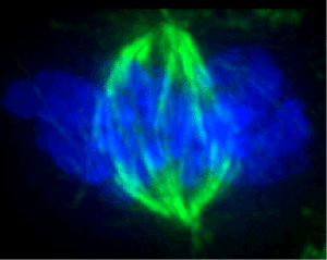 Mitotic cells can be visualized microscopically by staining them with fluorescent antibodies and dyes.