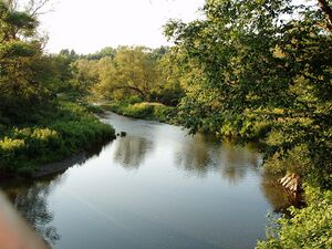 The meadows and flats of the Winooski River were well known among natives for their corn-raising capacities.[10] The natural site of Montpelier made it a favorite residence for the natives who first inhabited the land.[10] The level plain of nearly two hundred acres of the rich farmland, sheltered from winds by the surrounding valley made the area comparatively warm and comfortable.[10] Its position near the confluence of many streams allowed for favorable hunting, fishing, and trading.[10] Native mounds, tombstones, and other memorials of aboriginal life and death were found in Montpelier, or in the vicinity, by the first settlers, and traces of some of them still remain.[10]