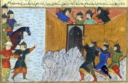 حصار المغول للموصل، من كتاب جامع التواريخ.