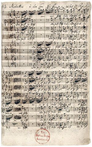 كتب يوهان سباستيان باخ أعمالاً أسماها موتت، relatively long pieces in German on sacred themes for choir and basso continuo, with instruments playing colla parte, several of them composed for funerals. Six motets certainly composed by Bach are: