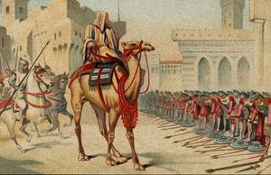 ![]() رسمٌ يُمثِّلُ دُخول المُسلمين إلى بيت المقدس (إيلياء حينها) | |||||||