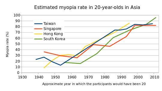 - ^ Morgan IG, French AN, Ashby RS, Guo X, Ding X, He M, Rose KA (January 2018). "The epidemics of myopia: Aetiology and prevention". Progress in Retinal and Eye Research. 62: 134–149. doi:10.1016/j.preteyeres.2017.09.004. hdl:1885/139488. PMID 28951126. S2CID 9323449.