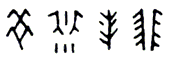- Wāng Níngshēng 汪寧生 (1981). 從原始記事到文字發明 (From Primitive Record-keeping to the Invention of Writing), 考古學報 Kǎogǔ Xuébào, v.1, p. 42 (in Chinese)