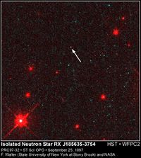 There are thought to be around one billion neutron stars in the Milky Way,[18] and at a minimum several hundred million, a figure obtained by estimating the number of stars that have undergone supernova explosions.[19] However, most are old and cold and radiate very little; most neutron stars that have been detected occur only in certain situations in which they do radiate, such as if they are a pulsar or part of a binary system. Slow-rotating and non-accreting neutron stars are almost undetectable; however, since the Hubble Space Telescope detection of RX J1856.5−3754 in the 1990s, a few nearby neutron stars that appear to emit only thermal radiation have been detected.