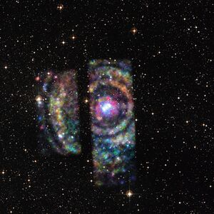 In addition to radio emissions, neutron stars have also been identified in other parts of the electromagnetic spectrum. This includes visible light, near infrared, ultraviolet, X-rays, and gamma rays.[52] Pulsars observed in X-rays are known as X-ray pulsars if accretion-powered, while those identified in visible light are known as optical pulsars. The majority of neutron stars detected, including those identified in optical, X-ray, and gamma rays, also emit radio waves;[57] the Crab Pulsar produces electromagnetic emissions across the spectrum.[57] However, there exist neutron stars called radio-quiet neutron stars, with no radio emissions detected.[58]