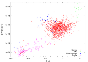 P and P-dot can also be plotted for neutron stars to create a P–P-dot diagram. It encodes a tremendous amount of information about the pulsar population and its properties, and has been likened to the Hertzsprung–Russell diagram in its importance for neutron stars.[51]