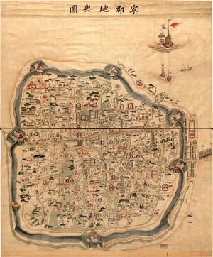 The city of Ningbo was known in Europe for a long time under the name of Liampó. This was the usual spelling used, for example in the standard Portuguese history, João de Barros's Décadas da Ásia, although Barros explained that Liampó was a Portuguese "corruption" of the more correct Nimpó.[23][24] The spelling Liampó is also attested to in the Peregrination (Peregrinação) by Fernão Mendes Pinto, a (so-called) autobiography written in Portuguese during the 16th century. For the mid-16th-century Portuguese, the nearby promontory, which they called the cape of Liampó after the nearby "illustrious city", was the easternmost known point of the mainland Asia.[23] The Portuguese began trading in Ningbo around 1522. By 1542, the Portuguese had a sizable community in Ningbo (or, more likely, on nearby small islands such as Shuangyu). Portuguese activities from their Ningbo base included pillaging and attacking multiple Chinese port cities around Ningbo. They also enslaved people during their raids.[25] The Portuguese were ousted from the Ningbo area in 1548.