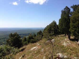 The Hudson River seen below an overlook on the Palisades in Alpine