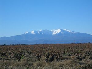 The Canigou (2785 m) seen from near Perpignan: the massif is roughly 60 كم من النقطة الملتقطة منها الصورة