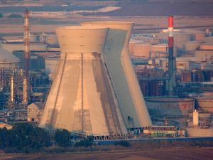 The iconic أبراج تبريد مصفاة نفط حيفا.