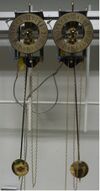 The harmonic oscillator and the systems it models have a single degree of freedom. More complicated systems have more degrees of freedom, for example, two masses and three springs (each mass being attached to fixed points and to each other). In such cases, the behavior of each variable influences that of the others. This leads to a coupling of the oscillations of the individual degrees of freedom. For example, two pendulum clocks (of identical frequency) mounted on a common wall will tend to synchronise. This phenomenon was first observed by Christiaan Huygens in 1665.[3] The apparent motions of the compound oscillations typically appears very complicated but a more economic, computationally simpler and conceptually deeper description is given by resolving the motion into normal modes.