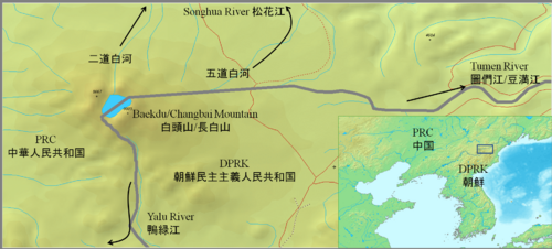 1. ^ أ ب "Paektu-san, China/North Korea". Peakbagger.com.