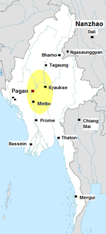 Pagan Empire under أنورتا؛ Minimal, if any, control over Arakan; Pagan's suzerainty over Arakan confirmed four decades after his death.