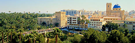 - إلش، إسبانيا إطلالة على المدينة مع خريطة مفصلة.