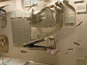 A Russian Academy of Sciences expedition later found fossils in the Aral Formation near the Aral Sea in Kazakhstan; it was the most complete indricothere skeleton known, but it lacked the skull. It is mounted in the Moscow Paleontological Museum. In 1916, based on these remains, Aleksei Alekseeivich Borissiak erected the genus Indricotherium named for a mythological monster, the "Indrik beast". He did not assign a species name, I. asiaticum, until 1923, but the Russian palaeontologist Maria Pavlova had already named it I. transouralicum in 1922.[1][12] Also in 1923, Borissiak created the subfamily Indricotheriinae to include the various related forms known by then.[13]