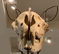 The back of the skull was low and narrow, without the large lambdoid crests at the top and along the sagittal crest, which are otherwise found in horned and tusked animals that need strong muscles to push and fight. It also had a deep pit for the attachment of nuchal ligaments, which hold up the skull automatically. The occipital condyle was very wide and Paraceratherium appears to have had large, strong neck muscles, which allowed it to sweep its head strongly downwards while foraging from branches.[4] The upper profile of the skull was arched, a distinguishing feature of the genus.[17] One skull of P. transouralicum has a domed forehead, whereas others have flat foreheads, possibly because of sexual dimorphism.[22] A brain endocast of P. transouralicum shows it was only 8 percent of the skull length, while the brain of the Indian rhinoceros is 17.7 percent of its skull length.[20]