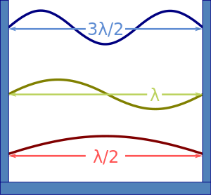 في صندوق جهدي تتخذ الموجات مقادير محددة فقط، بحيث يكون عرض الصندوق مساويا لعدد صحيح من نصف طول الموجة .