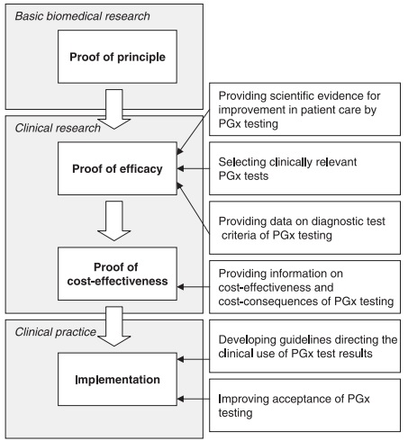 - تحسين إثبات مبدأ تجارب كفاءة علم الجينات الصيدلاني والتي قد يمكن تطبيقها على مختلف المجالات الطبية، ومنها ادارة الألم، طب القلب، علم الأورام، والطب النفسي. وقد يشمل التطبيق أيضاً الطب الشرعي، حيث يمكن استخدام علم الجينات الصيدلاني في تحديد سبب الوفاة في حالات الوفاة المرتبطة بالأدوية في غياب الأدلة التي تظهر عند تشريح الجثة.[8]