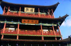 The area of present-day Datong eventually came under the control of the Qin dynasty, during which it was known as مديرية پينگتشنگ (平城县) and formed part of the Qin commandery of Yanmen.[3] Pingcheng County continued under the Han dynasty, which founded a site within present-day Datong in 200 BC following its victory against the Xiongnu nomads at the Battle of Baideng. Located near a pass to Inner Mongolia along the Great Wall, Pingcheng blossomed under Han rule and became a stop-off point for camel caravans moving from China into Mongolia and beyond. It was sacked at the end of the Eastern Han. Pingcheng became the capital of the Xianbei-founded Northern Wei dynasty from AD 398–494. The Yungang Grottoes were constructed during the later part of this period (460–494). During the mid to late 520s, Pingcheng was the seat of Northern Wei's Dai Commandery.[4] During the Tang dynasty, Datong became the seat of the Tang prefecture of Yunzhou, and the original Guandi temple was built.[5][6]