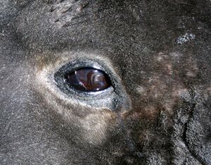 Pinnipeds have streamlined, spindle-shaped bodies with small or non-existent ear flaps, rounded heads, short muzzles, flexible necks, limbs modified into flippers and small tails.[25][26][27] The mammary glands and genitals can withdraw into the body.[25] Seals are unique among carnivorans in that their orbital walls are mostly shaped by the maxilla and are not contained by certain facial bones.[13] Compared to land carnivores, pinnipeds have fewer teeth, which are pointed and cone-shaped. They are adapted for holding onto slippery prey rather than shearing meat like the carnassials of other carnivorans. The walrus has unique tusks which are long upper canines.[28]