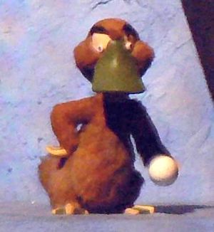 Caricature of platypus, holding an egg, at "It's a Small World" at the Magic Kingdom, Orlando, Florida.