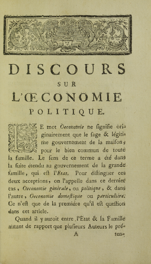 Jean-Jacques Rousseau, Discours sur l'oeconomie politique, 1758