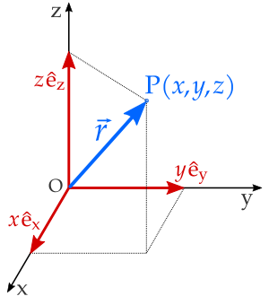 In three dimensions, any set of three-dimensional coordinates and their corresponding basis vectors can be used to define the location of a point in space—whichever is the simplest for the task at hand may be used.