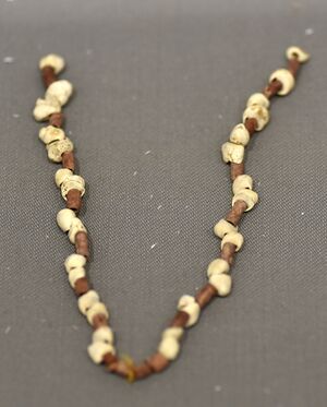 Necklace made of white stones and cornelians found at the Neolithic site of Bestansur. Iraq (7800-7500 BC). Museum of Sulaymaniyah - Iraq.